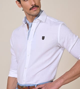 Elevate your everyday round-the-clock look with this must-have classic shirt showcasing a faux leather crest. Disclaimer: All other items in the image are only for display purposes and will not be a part of the delivery content. Product colour may slightly vary due to photographic lighting sources. Country of Origin - India.