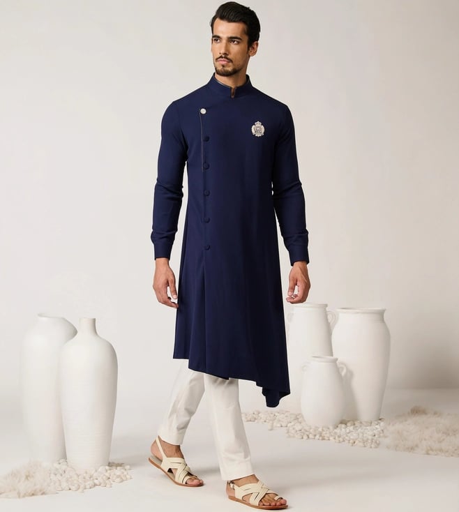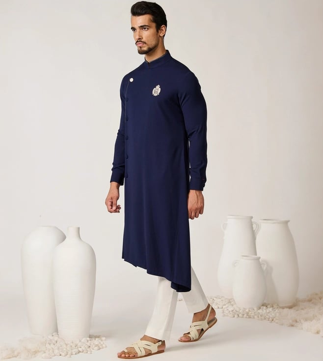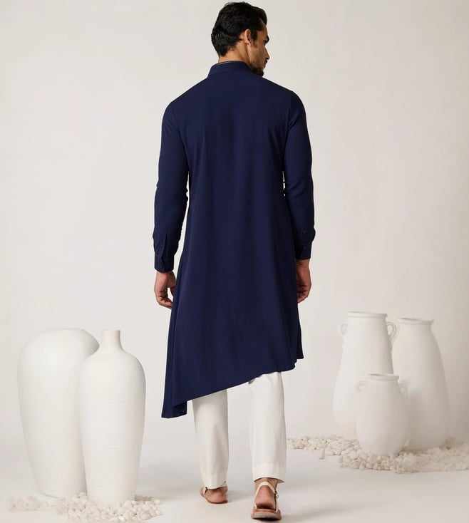 S&N Shantnu Nikhil Navy Reverie Minimalistic Asymmetric Kurta