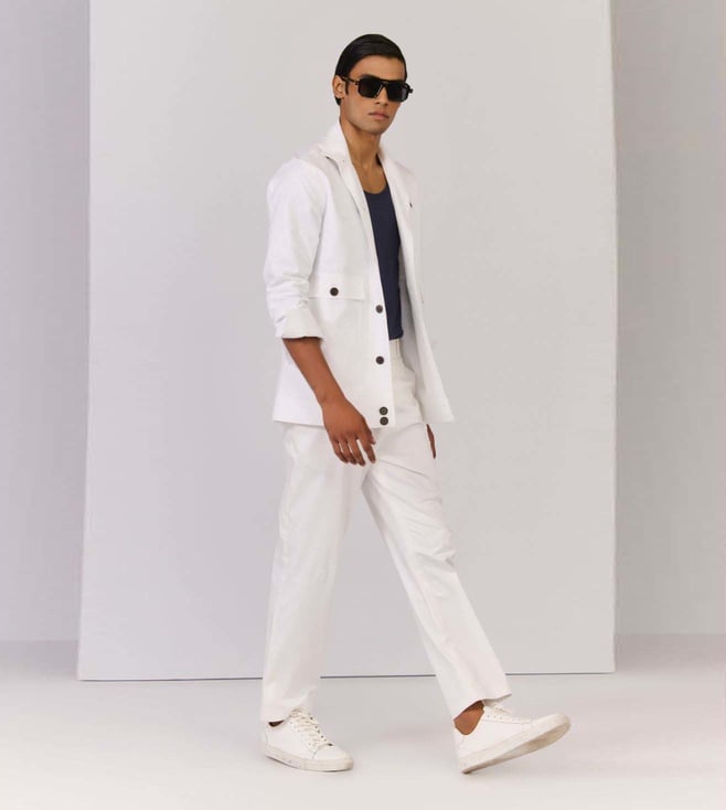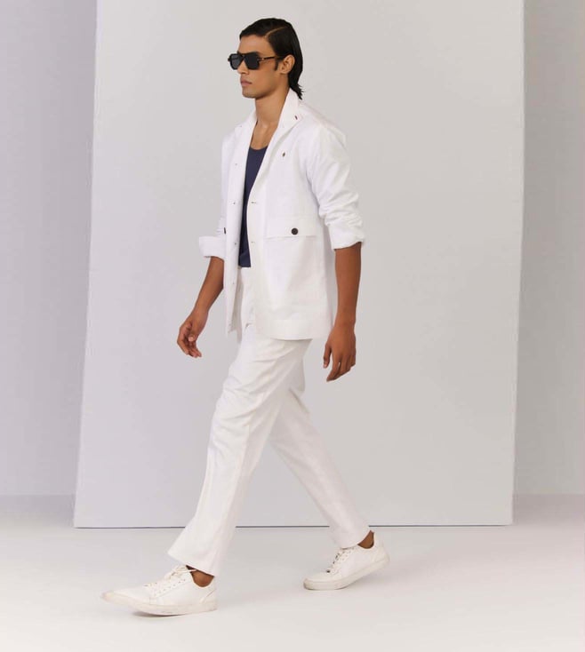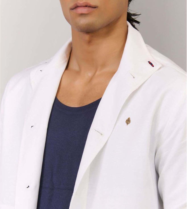 S&N Shantnu Nikhil Off White Linen Slim Fit Shirt