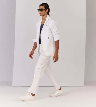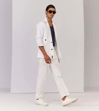Score high on the fashion radar by wearing this off white slim fit shirt from SandN Shantnu Nikhil. Tailored to sartorial perfection from premium quality fabric, it assures a soft and soothing touch against the skin. The shirt collar adds to its appeal.