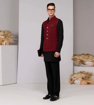 S&N Shantnu Nikhil Red Slim Fit Ethnic Jacket