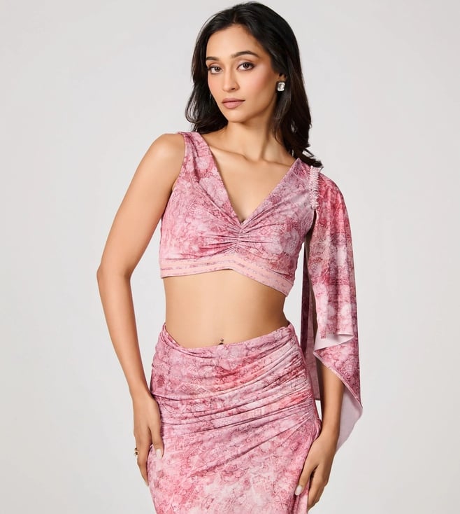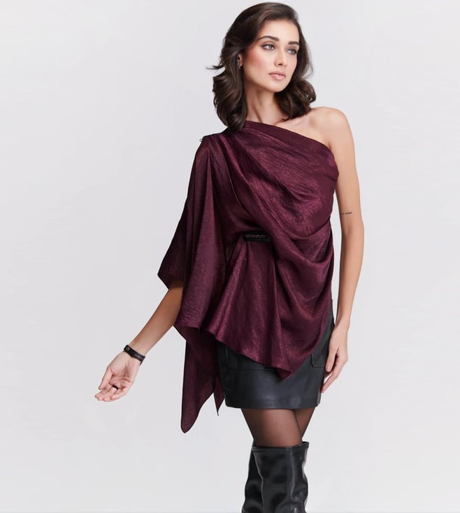S&N by Shantnu Nikhil Rust Adamas Printed One-Shoulder Top