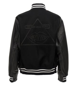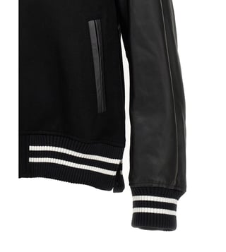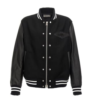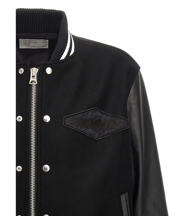 Elevate your style with the Sacai Black Bomber Jacket. Sacai gonz' wool bomber jacket with leathereffect fabric sleeves, button or zip closure, pockets, long cuffed sleeves, front logo patch, back embroidery. True to size fit. Products purchased from Darveys are supported exclusively by the warranty/exchange policies of Darveys and its partner boutiques. Brand owners and their channel partners are not responsible for exchange/warranty services for items purchased through Darveys.