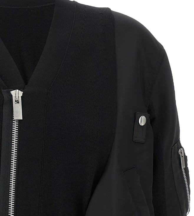 Sacai Black Nylon Insert Cardigan