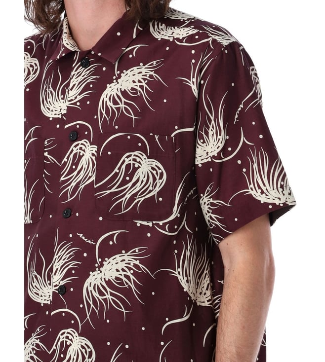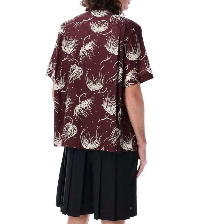 Elevate your style with the Sacai Maroon Floral shirt. Printed, short sleeves, collar, short sleeves, front button closure.