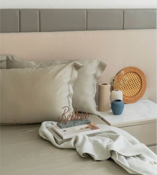 Elevate your bedroom decor with the luxurious Sadyaska pistachio tencel solid 400 thread count super king bedsheet with pillow cover set. Crafted from high-quality tencel fabric, this set offers unmathread counthed softness and comfort. The 400 thread count ensures a silky smooth feel while the pistachio color adds a touch of elegance to your space. Complete with pillow covers, this set is perfect for those who appreciate both style and quality. Transform your sleep experience with this indulgent bedding set today.