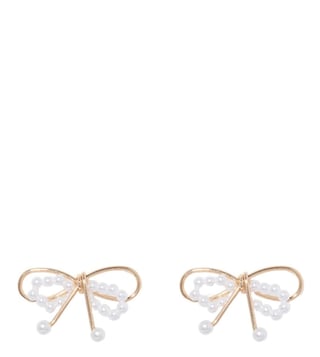 Elevate your style with our sage bow and metal earrings from Forever New. These charming earrings feature a delicate wire design crafted into a whimsical bow shape, embellished with petite pearls for a touch of elegance. The gold tone setting adds a luxe touch, while the post back fastening ensures secure wear for pierced ears. Perfect for adding a touch of charm and sophistication to any outfit, these earrings are a must have accessory for any fashionista.