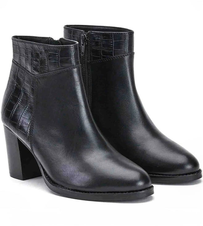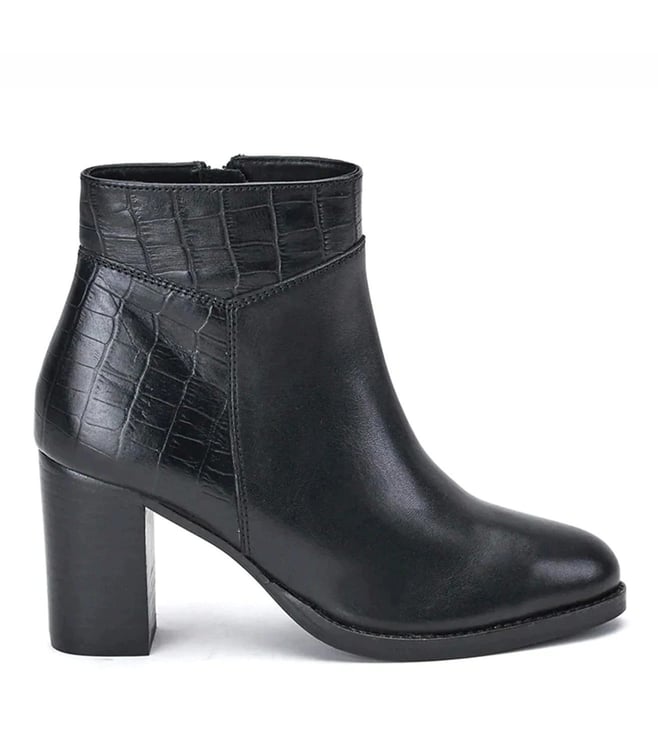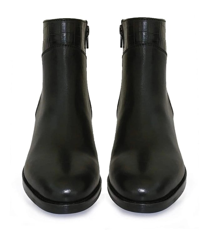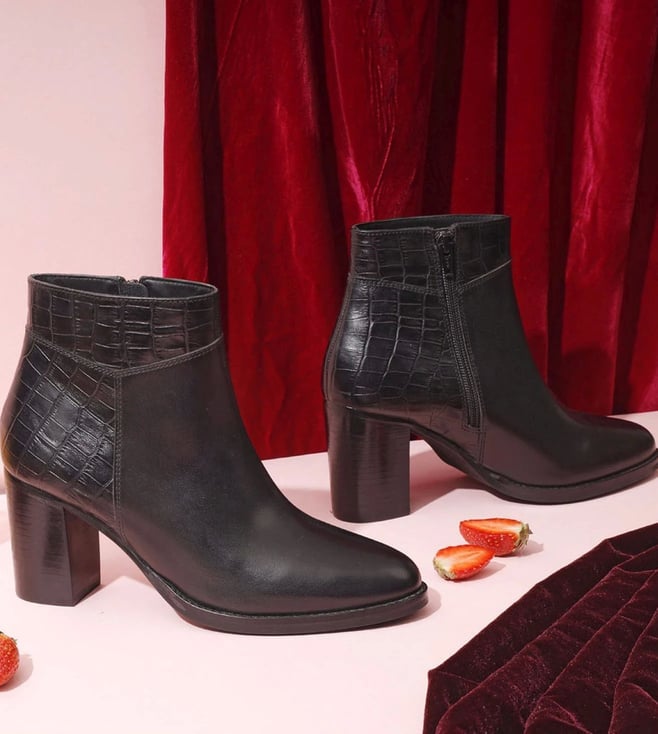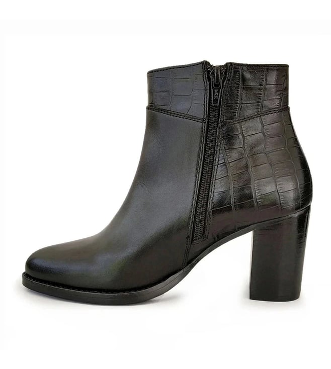 Saint G Black Alexa Croco Embossed Leather Ankle Boots