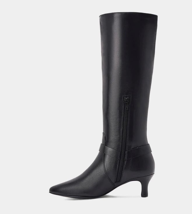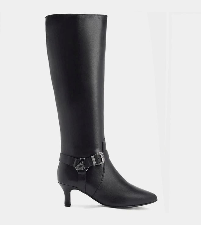 Beautifully made, this pair of boots showcase a Roman handcrafted buckled wrap strap with O-ring detail, stitching accents, leather lining for a luxurious feel. A padded footbed provides lasting comfort. It has a pointed toe and an inside zip closure to ensure comfortable slip-on and off. It is fitted on a low stiletto heel. This pair from Saint G has genuine leather upper. It comes with a Tunit sole that gives you enough traction. Disclaimer: Product colour may slightly vary due to photographic lighting sources. Country of Origin - India.