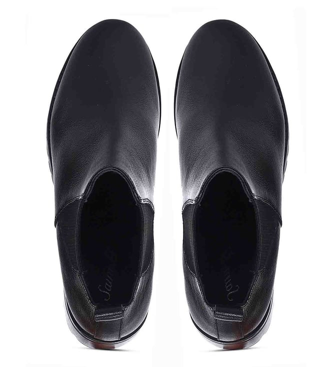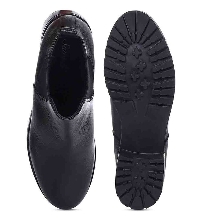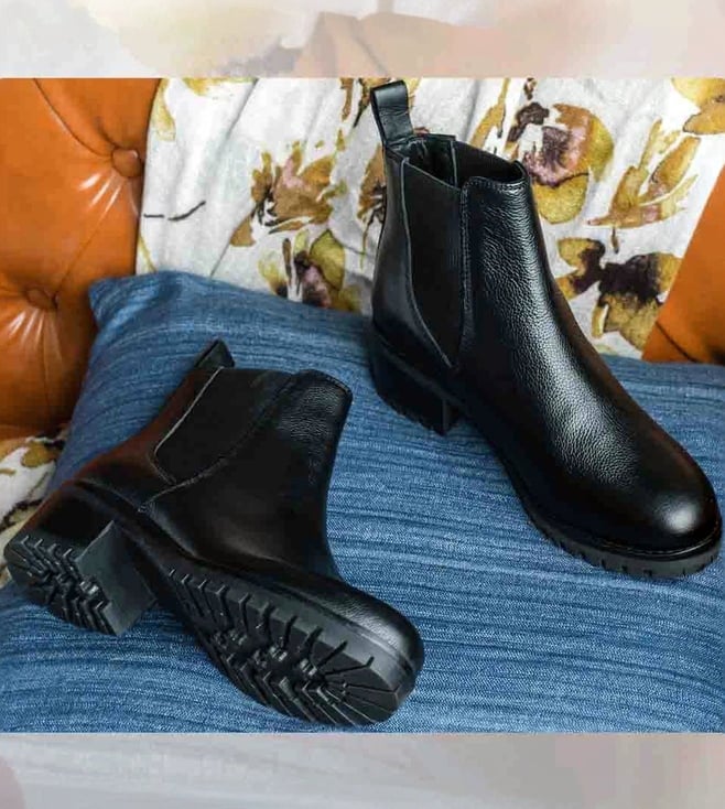 Step out in style with these chic Saint G Sophia Black Leather Ankle Boots. Made from high-quality leather, these black boots add a touch of sophistication to any outfit. Pair them with your favorite jeans or dress for a fashionable look. Choose comfort without compromising style!' Disclaimer: All other items in the image are only for display purposes and will not be a part of the delivery content. Product colour may slightly vary due to photographic lighting sources. Country of Origin - India.