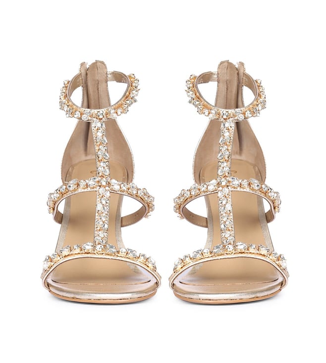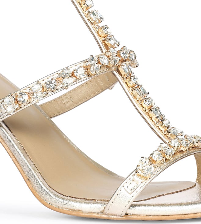 Saint G Stone Embellished Metallic Gold Leather Stilettos