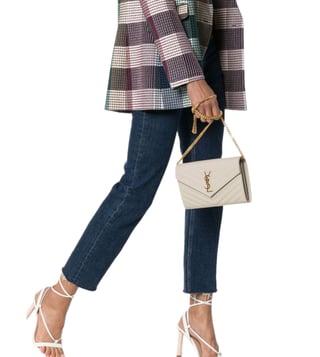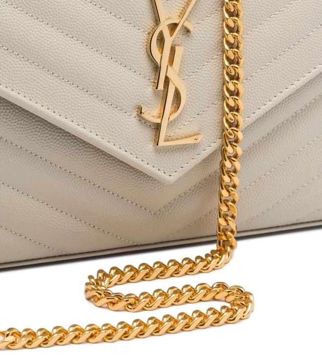 This timeless chain shoulder bag features the signature cassandre embellishment and iconic chevron quilting. Designed for practicality, it includes two large compartments, a zippered pocket, and card slots. It can be carried as a clutch or worn on the shoulder with its detachable chain. Products purchased from Darveys are supported exclusively by the warranty/exchange policies of Darveys and its partner boutiques. Brand owners and their channel partners are not responsible for exchange/warranty services for items purchased through Darveys.