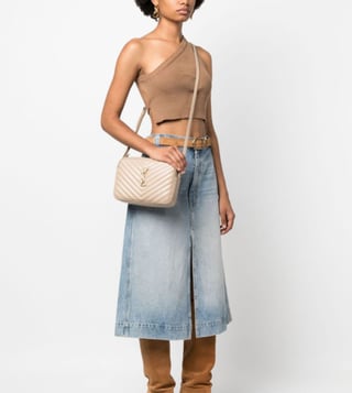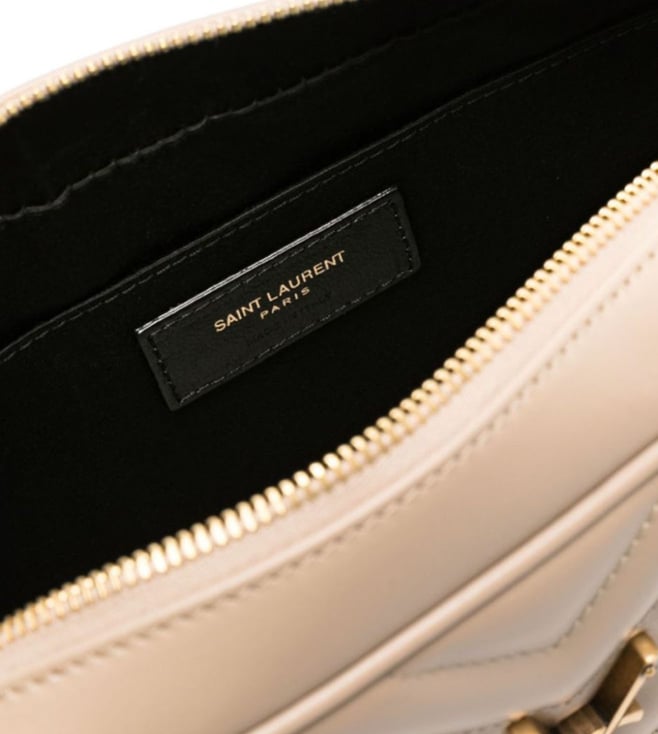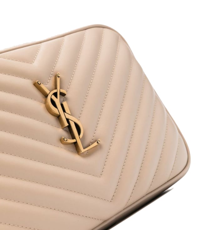 Expand the collection of your accessories in a trendy way with this bag from Saint Laurent. Beige, gold-tone hardware, ysl logo plaque, top zip closure, interior slip pocket, adjustable shoulder strap. Products purchased from Darveys are supported exclusively by the warranty/exchange policies of Darveys and its partner boutiques. Brand owners and their channel partners are not responsible for exchange/warranty services for items purchased through Darveys.