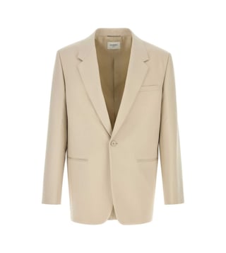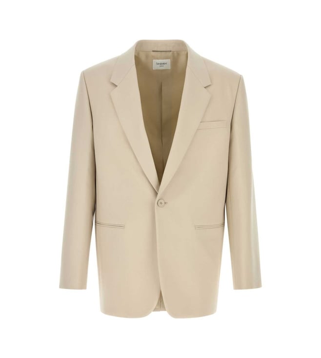 Elevate your style with the Saint Laurent Beige Blazer. Collar, front button closure, long sleeves, pockets. Products purchased from Darveys are supported exclusively by the warranty/exchange policies of Darveys and its partner boutiques. Brand owners and their channel partners are not responsible for exchange/warranty services for items purchased through Darveys.
