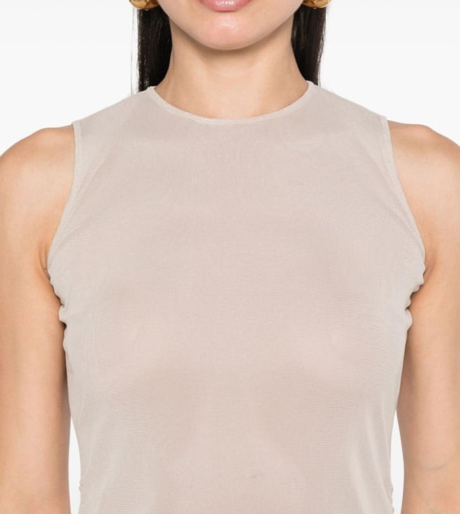 Embrace timeless elegance with this exquisite beige dress, crafted from 100% polyamide for a luxurious feel. The solid pattern exudes sophistication, while the sleeveless design and round neck offer a modern, chic silhouette. Perfect for any occasion, this dress seamlessly combines comfort and style. Its sleek closure ensures a flawless fit, making it an essential addition to any wardrobe. Whether for a casual outing or a formal event, this dress promises to be a versatile favorite.