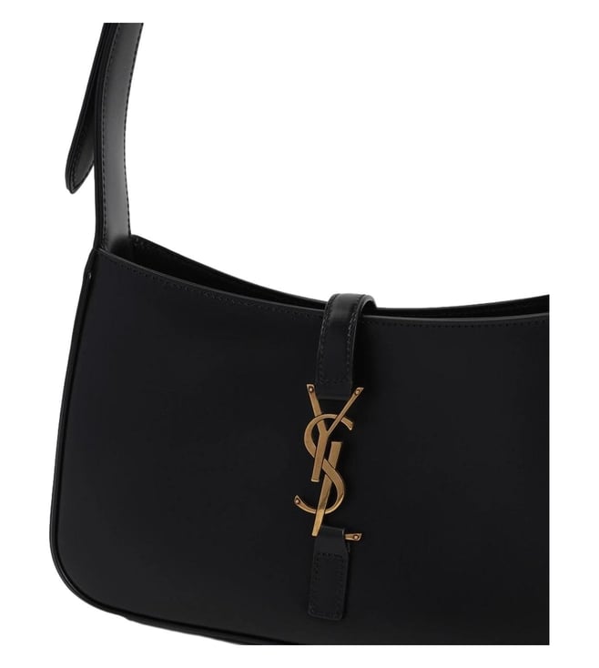Saint Laurent black leather le 5 7 hobo bag. Black leather, tonal adjustable strap. Top strap and hook fastening, front metal logo detail. Golden-tone hardware, one internal zip pocket.