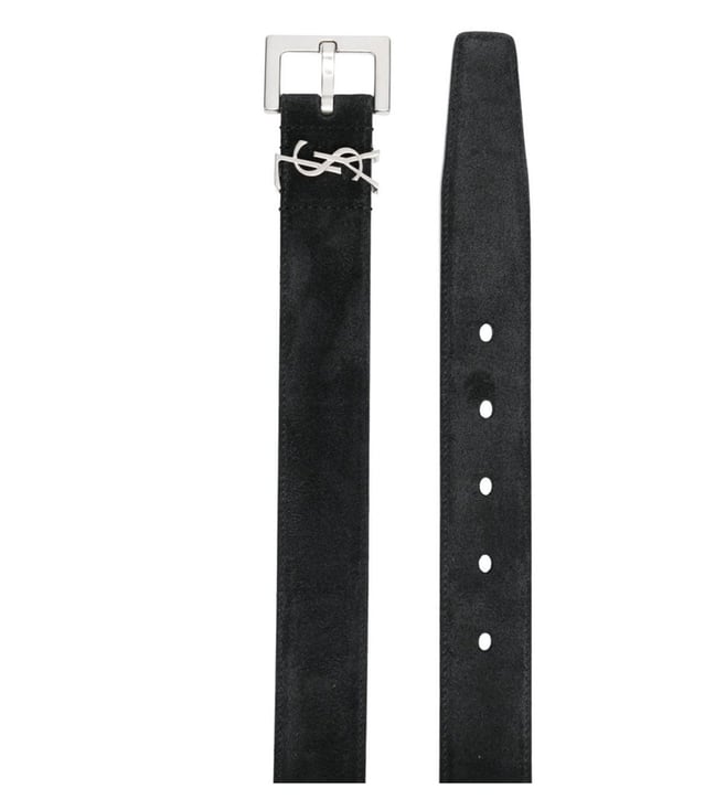 Elevate your everyday style with the Saint Laurent casual black Suede belt. Crafted from luxurious suede, this 3cm wide belt features a sleek metal YSL logo buckle, adding a touch of sophistication to any outfit. Perfect for men looking to effortlessly elevate their casual looks, this belt is a versatile accessory that will effortlessly take you from day to night. Make a statement with this timeless piece that combines quality craftsmanship with iconic design.