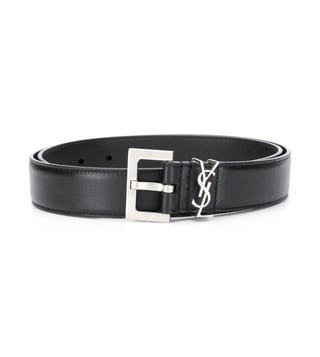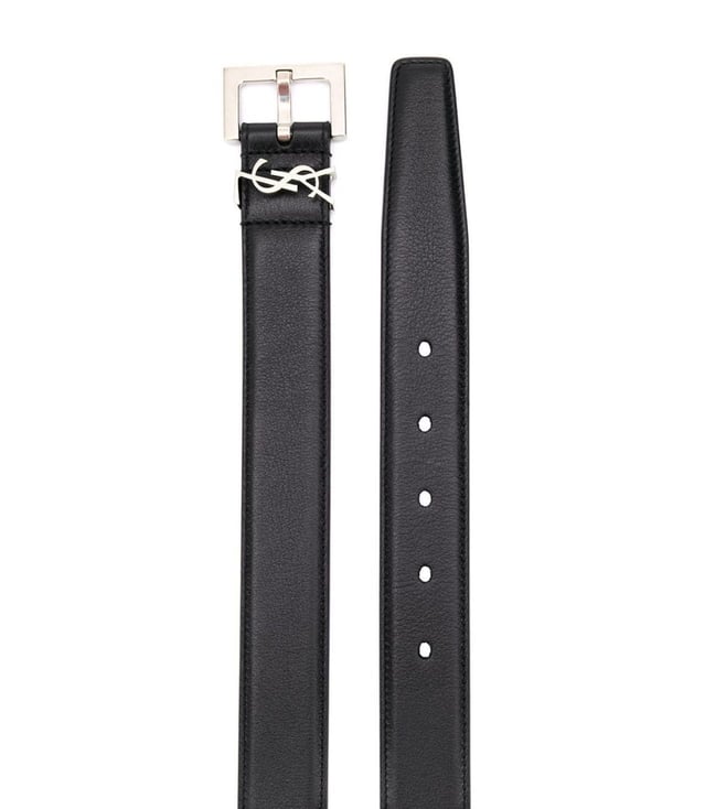 Saint Laurent Black Monogram leather belt: BLACK leather Monogram square-buckle belt from SAINT LAURENT featuring silver-tone hardware, buckle fastening, adjustable fit and signature YSL logo plaque. Products purchased from Darveys are supported exclusively by the warranty/exchange policies of Darveys and its partner boutiques. Brand owners and their channel partners are not responsible for exchange/warranty services for items purchased through Darveys.