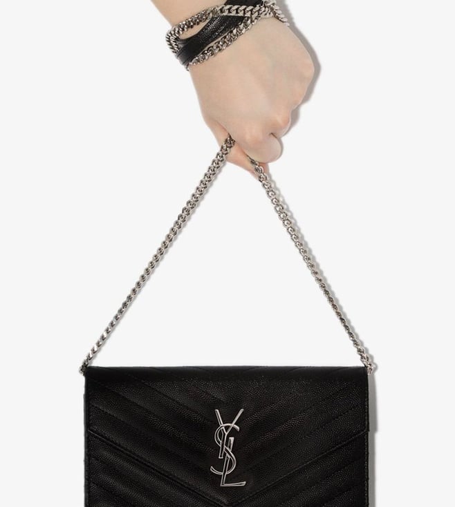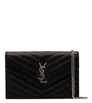 Saint Laurent Black Monogram Leather Clutch on Chain