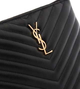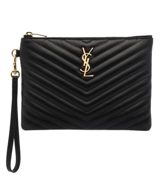 Expand the collection of your accessories in a trendy way with this bag from Saint Laurent. Black, top zip fastening, a gold-tone ysl logo and an internal slip pocket with brand patch. Products purchased from Darveys are supported exclusively by the warranty/exchange policies of Darveys and its partner boutiques. Brand owners and their channel partners are not responsible for exchange/warranty services for items purchased through Darveys.
