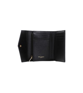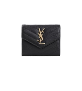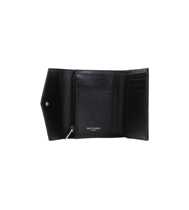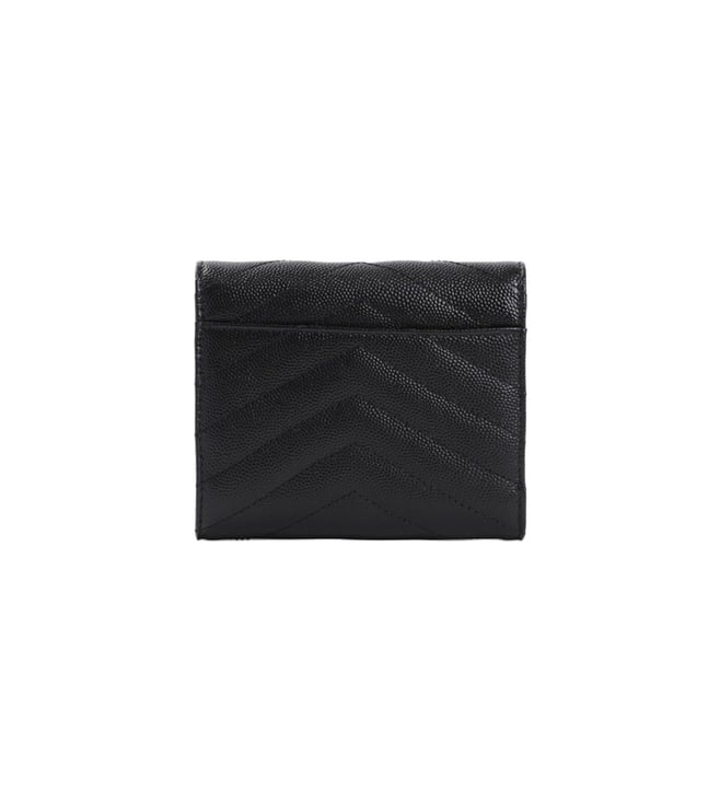 Saint laurent black quilted leather mini wallet. black quilted leather, front flap with magnetic fastening, ysl logo on front, golden-tone hardware. 6 car slots inside, document pocket and zipped pocket. w:12cm h:9,5cm d:2,5cm Products purchased from Darveys are supported exclusively by the warranty/exchange policies of Darveys and its partner boutiques. Brand owners and their channel partners are not responsible for exchange/warranty services for items purchased through Darveys.