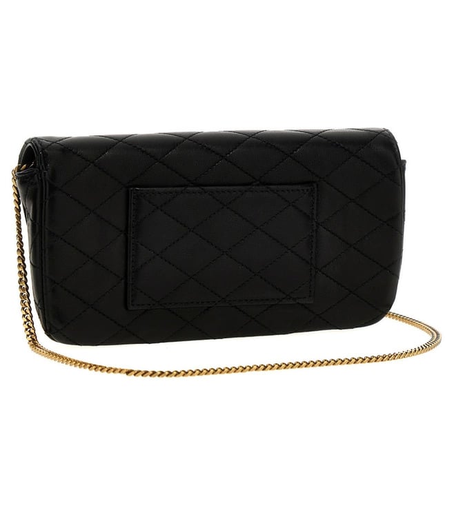 Black sintra crossbody bag, magnetic closure, 1 compartment, back pocket, quilted, metal logo, removable chain crossbody strap. Products purchased from Darveys are supported exclusively by the warranty/exchange policies of Darveys and its partner boutiques. Brand owners and their channel partners are not responsible for exchange/warranty services for items purchased through Darveys.