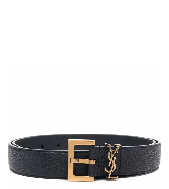 Elevate your casual look with the Saint Laurent casual Textured black Leather Belt. Crafted from pure black grained leather, this sleek accessory features a front buckle with the iconic YSL signature logo belt loop, exuding a touch of luxury. The gold-tone hardware adds a sophisticated touch to any outfit. With a width of 2.8cm, this belt is perfect for the modern man looking to add a refined edge to his ensemble. Make a statement with this timeless and versatile accessory.
