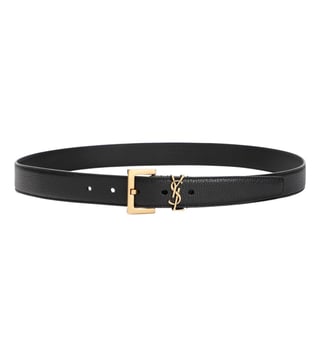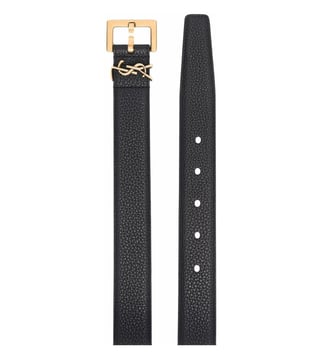 Elevate your casual look with the Saint Laurent casual Textured black Leather Belt. Crafted from pure black grained leather, this sleek accessory features a front buckle with the iconic YSL signature logo belt loop, exuding a touch of luxury. The gold-tone hardware adds a sophisticated touch to any outfit. With a width of 2.8cm, this belt is perfect for the modern man looking to add a refined edge to his ensemble. Make a statement with this timeless and versatile accessory.