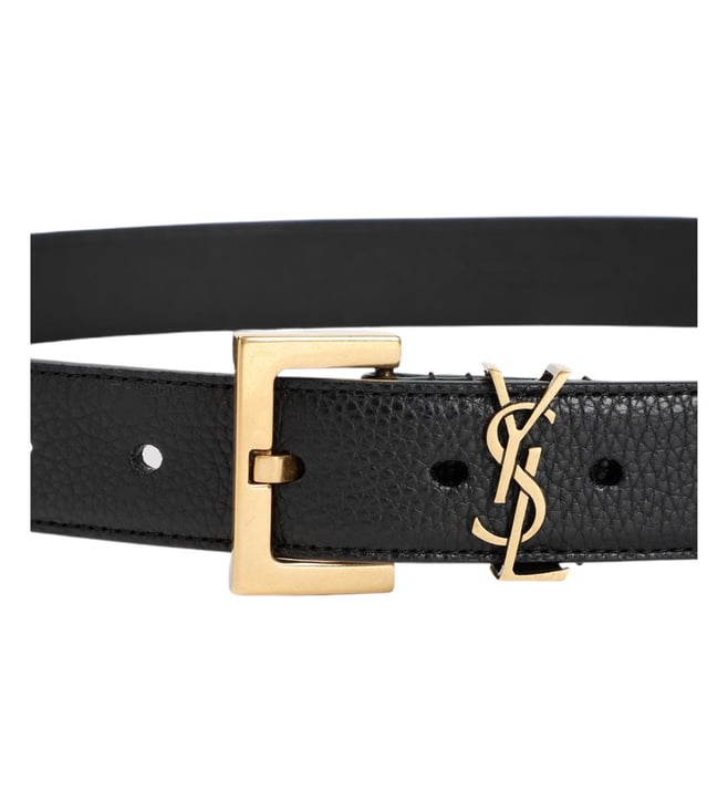 Saint Laurent Black Square Buckle Cassandre Belt