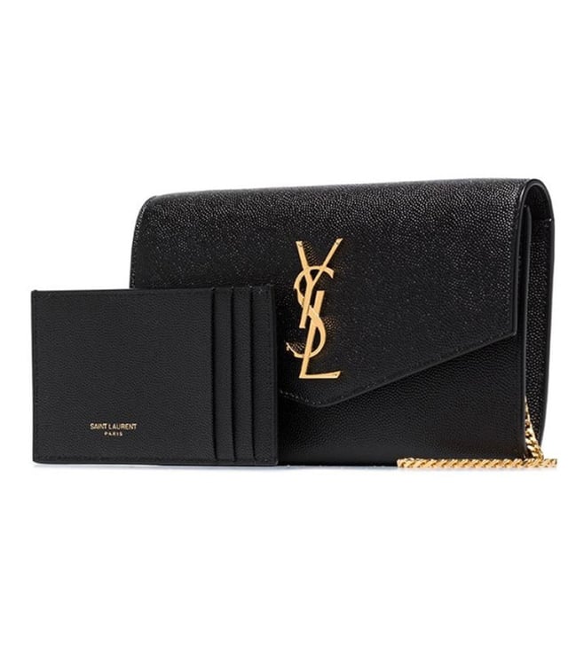 Expand the collection of your accessories in a trendy way with this bag from Saint Laurent. Its versatile design complements any outfit, making it an essential for basic and casual activities. Featuring black, magnetic closure, 1 compartment, front logo, chain strap. Products purchased from Darveys are supported exclusively by the warranty/exchange policies of Darveys and its partner boutiques. Brand owners and their channel partners are not responsible for exchange/warranty services for items purchased through Darveys.