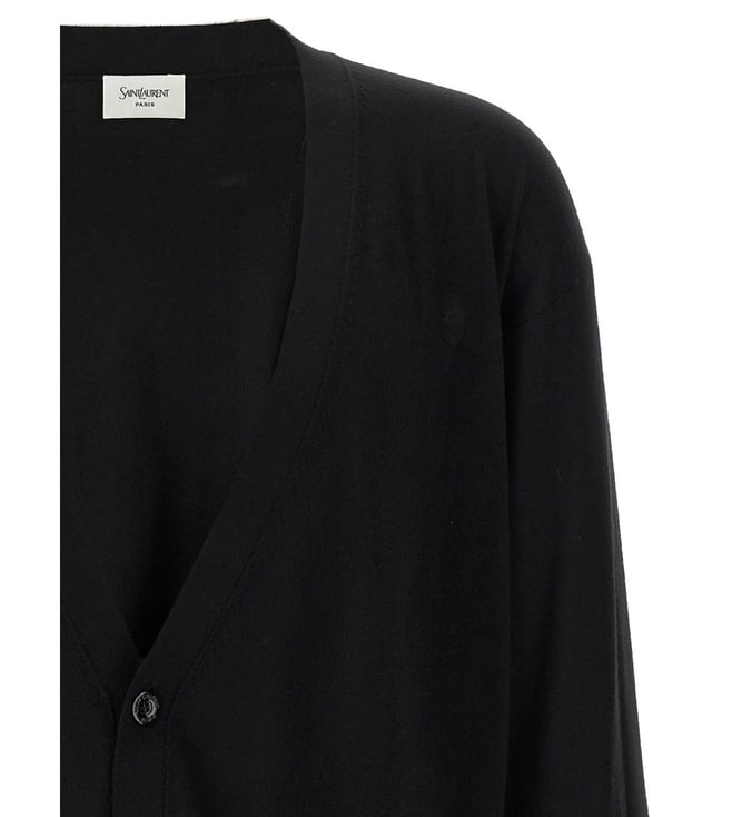 Elevate your style with the Saint Laurent Black Relaxed Fit Cardigan. Fine wool cardigan, vneck, front button closure, long cuffed sleeves. Comfort fit. Products purchased from Darveys are supported exclusively by the warranty/exchange policies of Darveys and its partner boutiques. Brand owners and their channel partners are not responsible for exchange/warranty services for items purchased through Darveys.