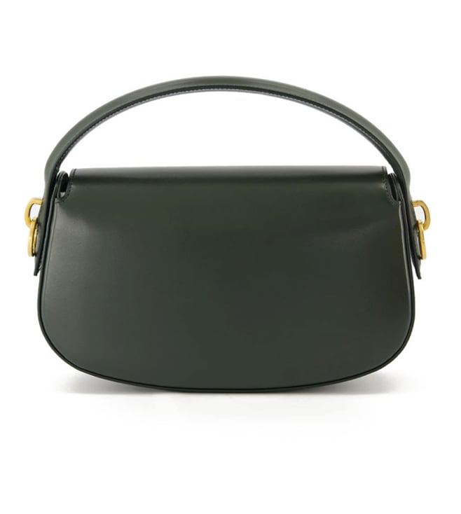 Green Voltaire Shoulder Bag, turn lock closure, 1 compartment, solid, metal logo, top handle with removable adjustable strap. With its timeless design and practical features, this bag is a must-have accessory for the modern woman on-the-go. Products purchased from Darveys are supported exclusively by the warranty/exchange policies of Darveys and its partner boutiques. Brand owners and their channel partners are not responsible for exchange/warranty services for items purchased through Darveys.