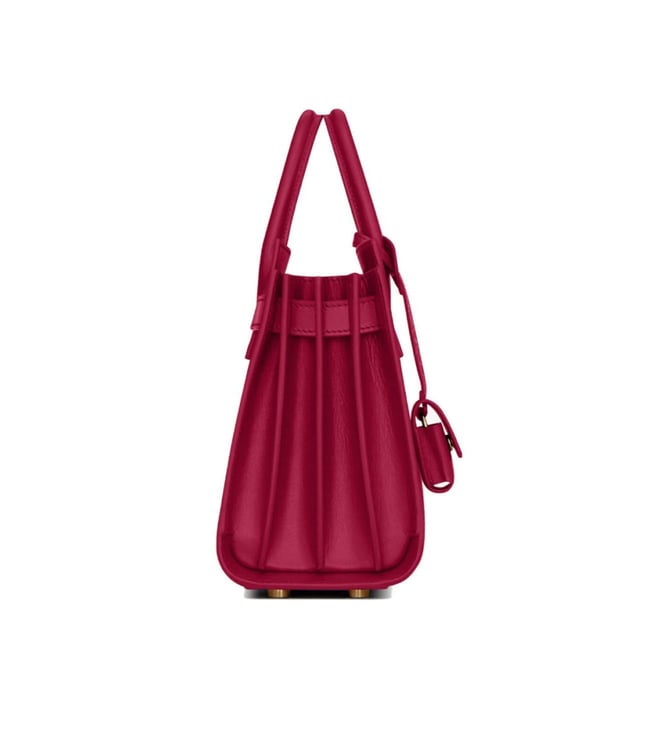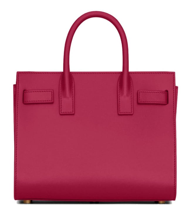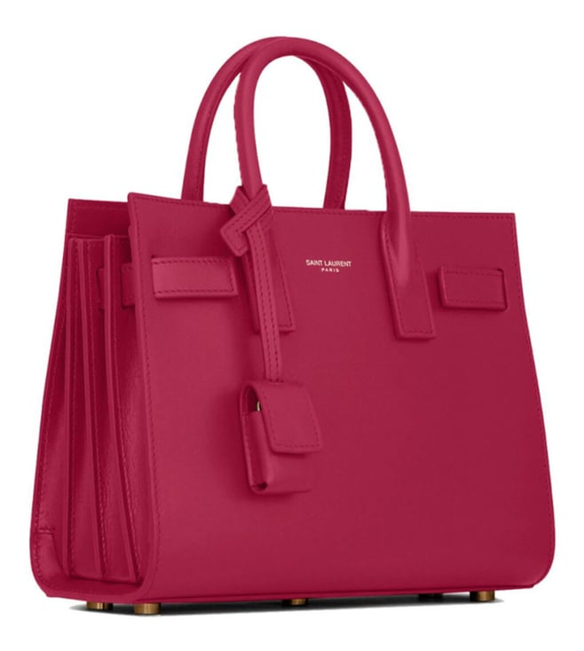 Expand the collection of your accessories in a trendy way with this bag from Saint Laurent. Pink leathersmooth grainglossy finishtwo rolled top handlesadjustable detachable shoulder straplogo stamp to the frontpadlock detailmetal feetmain compartmentgold-tone hardware. Products purchased from Darveys are supported exclusively by the warranty/exchange policies of Darveys and its partner boutiques. Brand owners and their channel partners are not responsible for exchange/warranty services for items purchased through Darveys.
