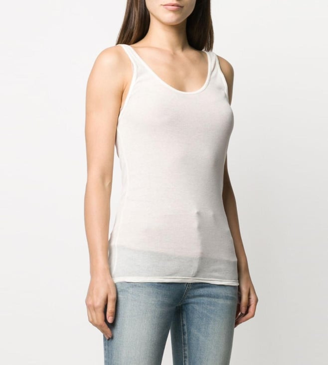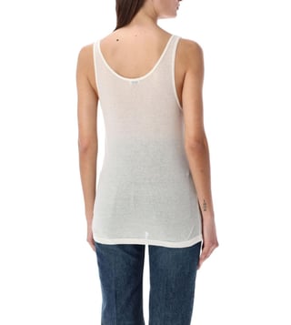 Elevate your wardrobe with the Saint Laurent White Sleeveless Top, a masterpiece of minimalist elegance. Crafted from a luxurious blend of 52% modal and 48% cotton, this top offers a soft, breathable feel against the skin. Its regular fit drapes effortlessly, providing a flattering silhouette for any occasion. The pristine white hue exudes timeless sophistication, while the sleek design ensures versatility. Perfect for layering or wearing solo, this top is a staple for the modern woman seeking understated chic.
