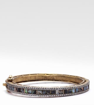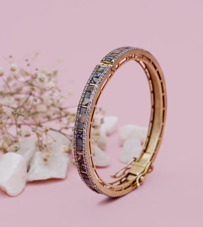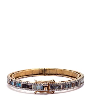 Flawless and flattering, this bracelet from the Charbagh collection will leave you in awe. It has been crafted with care from impressive 24 kt gold plated silver. It is studded with a mother of pearls that speaks for exquisite workmanship. Disclaimer: Product colour may slightly vary due to photographic lighting sources. Country of Origin - India.