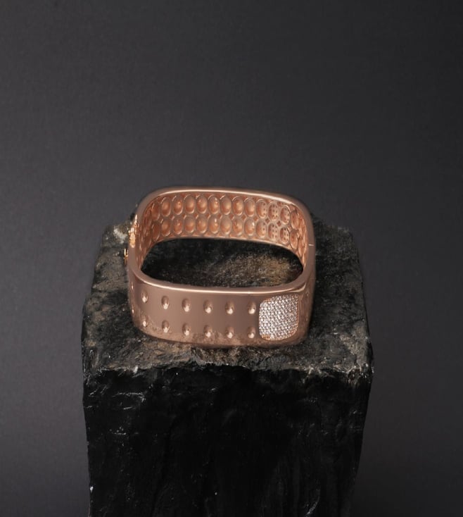 This beautiful bracelet is finished in 24 kt rose gold plated by skilled artisans. It is crafted with care using silver. Disclaimer: Product colour may slightly vary due to photographic lighting sources. Country of Origin - India.
