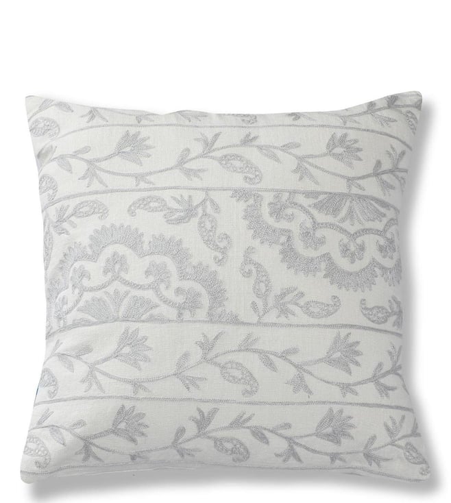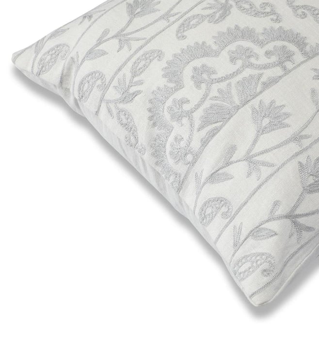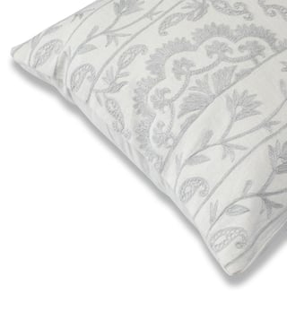 Leave your guest spellbound by decorating your house with this subtle off-centred cushion. The suzani motif and florals in neutral hues look vintage and elegant. It has been decorated with tonal embroidery, adding texture and elevating any theme of living space. It has been tailored using premium quality 100 percent cotton fabric for ease of maintenance and durability.