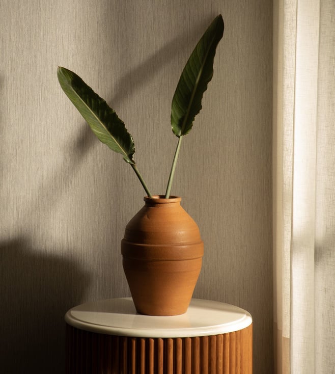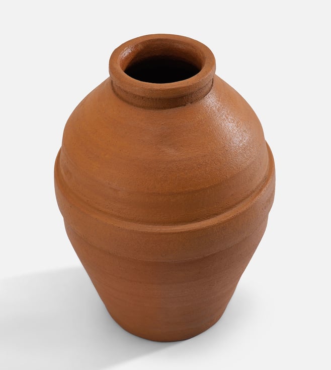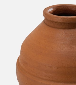 Overview: Sarita Handa¿s RUSE vase is handcrafted from high-quality terracotta, inspired by South-East Asian pottery traditions. Its natural matte fi nish in a warm brown tone showcases the craftsmanship, while the ceramic slab shaping technique adds unique texture. Designed for versatility, it serves as a fl ower vase and a decorative accent.Design Story: The Ruse vase embraces organic minimalism, highlighting simple forms and raw materials. Subtle variations in texture and shape make each piece unique, balancing function with understated style.