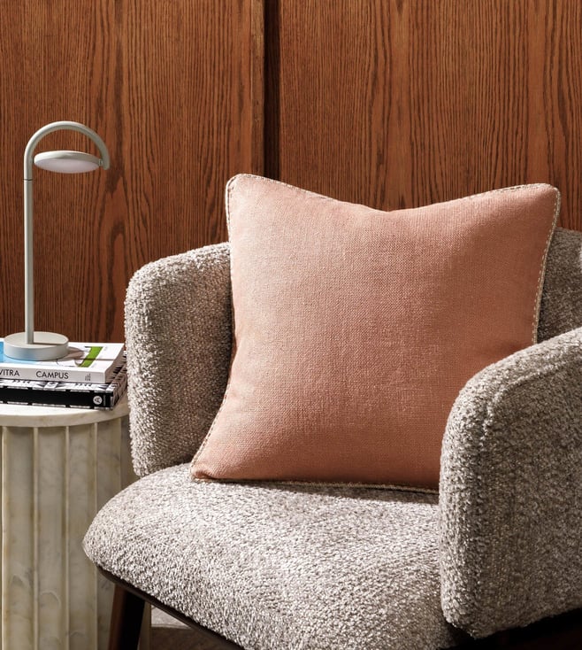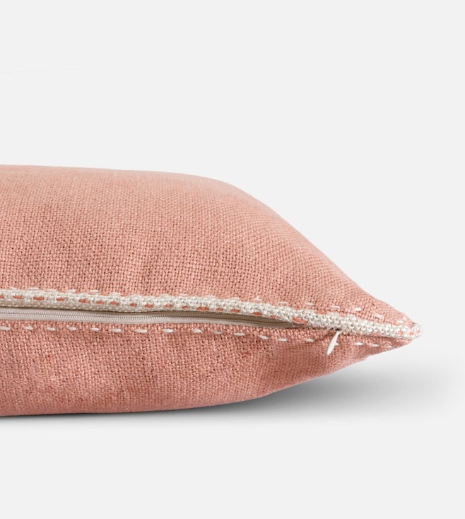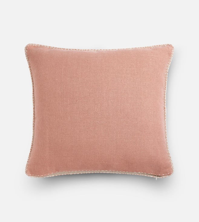 Carson Coral Linen Embroidered Cushion Cover - 300 gms