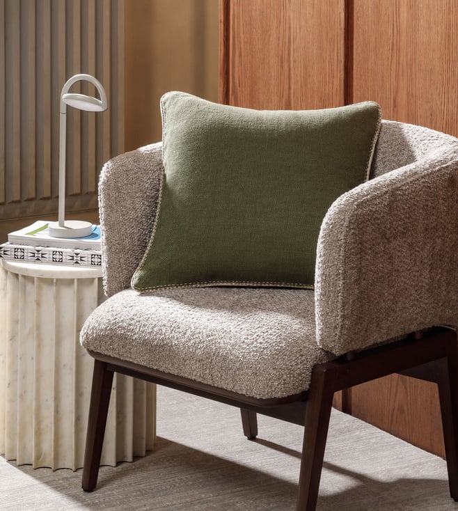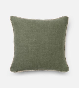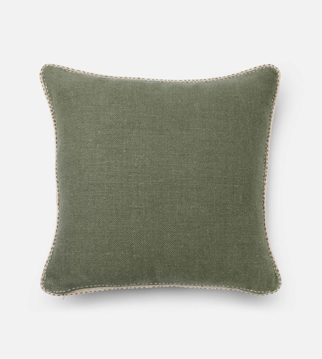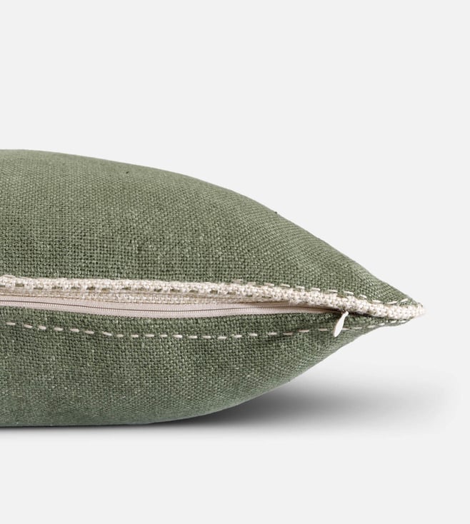 Sarita Handa Carson Green Linen Embroidered Cushion Cover - 300 gms