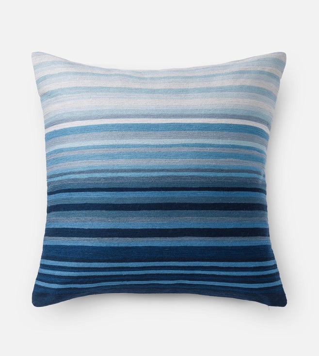 Ombre Stripe Blue Cotton Slub Embroidered Cushion Cover - 300 gms