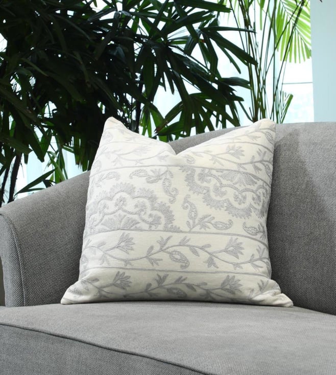 Ivory Grey Ikhat Square Cotton Cushion Cover