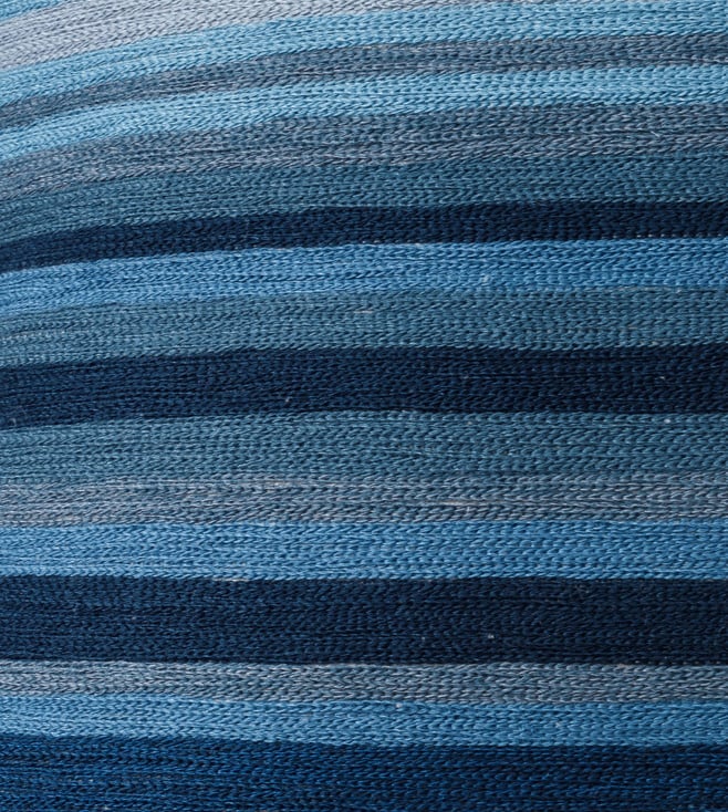 Sarita Handa Ombre Stripe Blue Cotton Slub Embroidered Cushion Cover - 300 gms