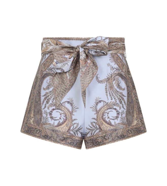 Beige Paris Logo Plaque Belted Relaxed Fit Shorts