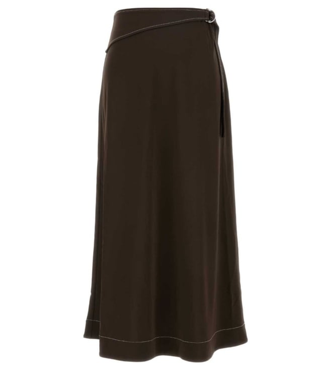 Brown Embellished Flared Fit Waistcoat with Belted Skirt Set