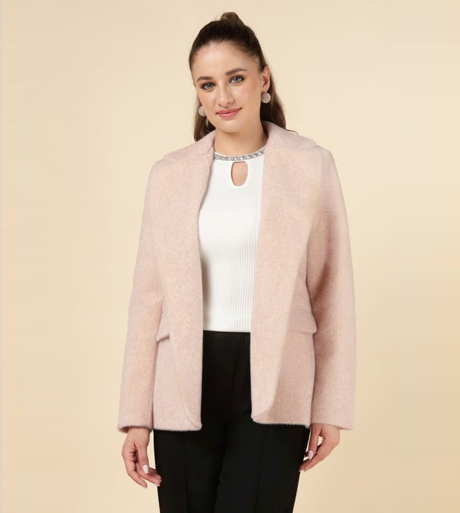 Light Pink Relaxed Fit Fur Blazer With Belt