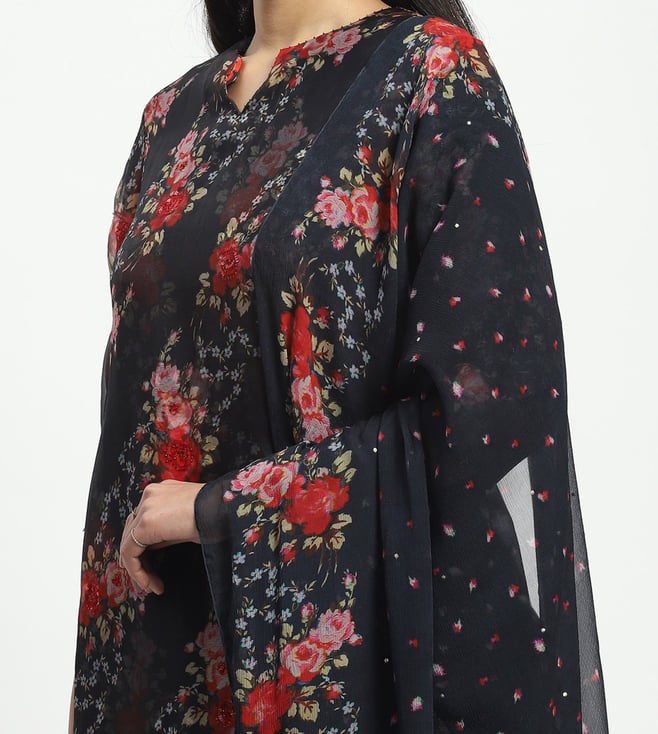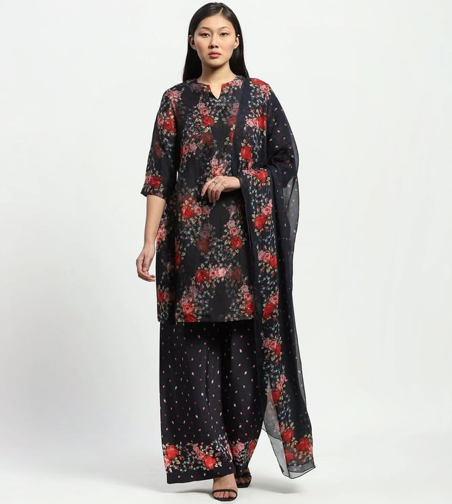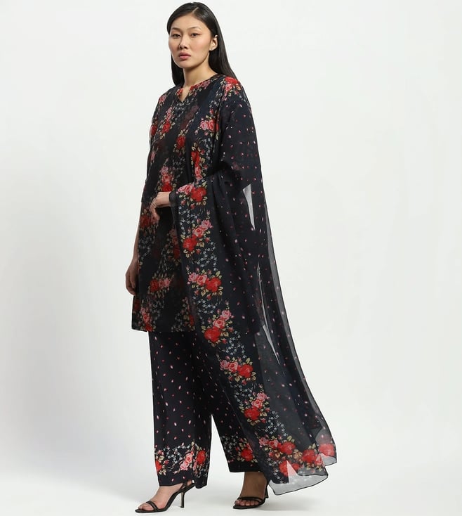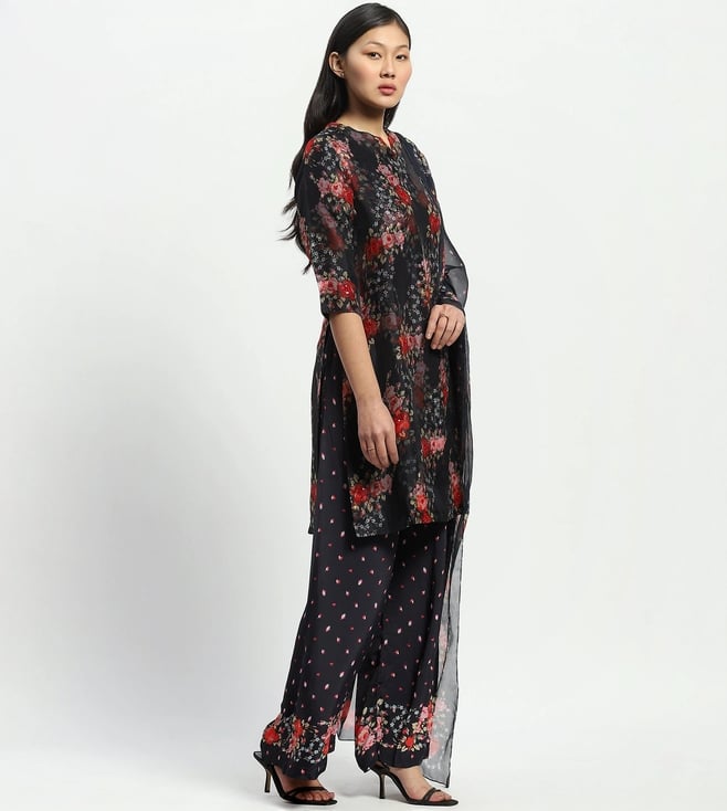 SATYA PAUL Black Rose Kurta with Bottom and Dupatta