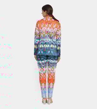 An ensemble that is as crafty as it is quirky, the Fonzie is a mirror printed jacket in satin stretch pairs well with crop-tops, long-dresses, and classic blouses.