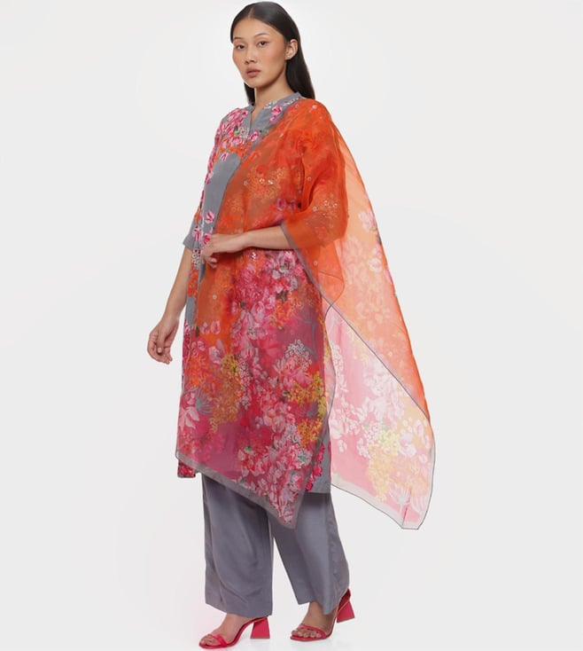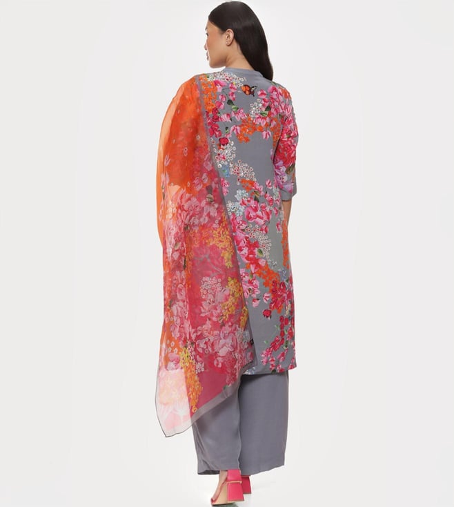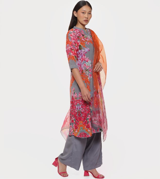 SATYA PAUL Grey Over And Over Kurta with Bottom and Dupatta
