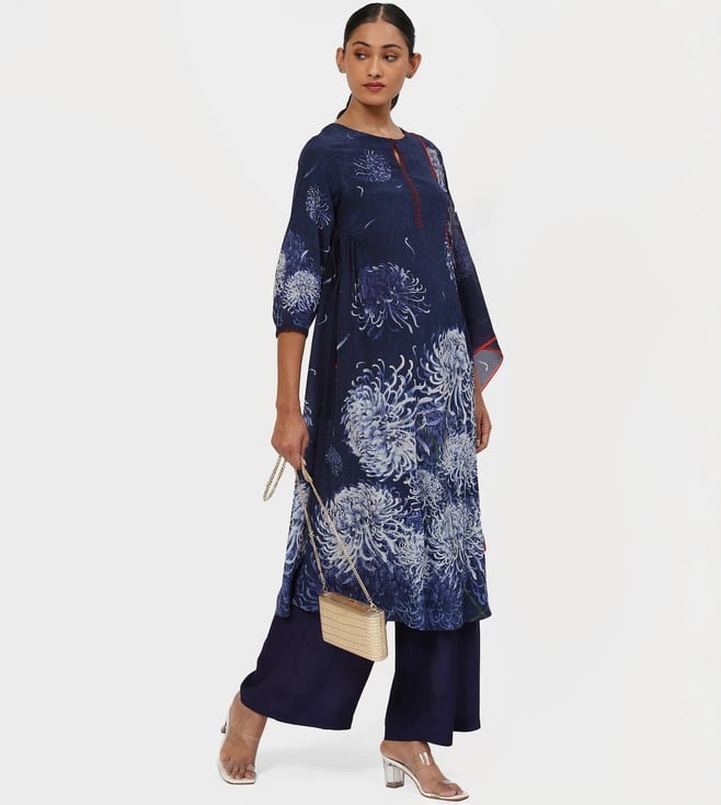 SATYA PAUL Indigo Blue The Blissful Blossom Kurta with Bottom